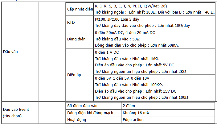 (1) Có thể chọn Thermocouple, RTD, dòng điện trực tiếp hoặc điện áp DC bằng bàn phím.