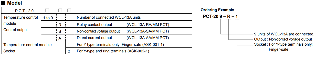 PCT-200 có 3 kiểu ngõ ra điều khiển chính tùy theo model WCL-13A sử dụng: