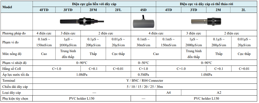 | 3 điện cực | Giảm phân cực điện cực, đo ổn định hơn 2 điện cực | Nước cấp, hệ thống RO |